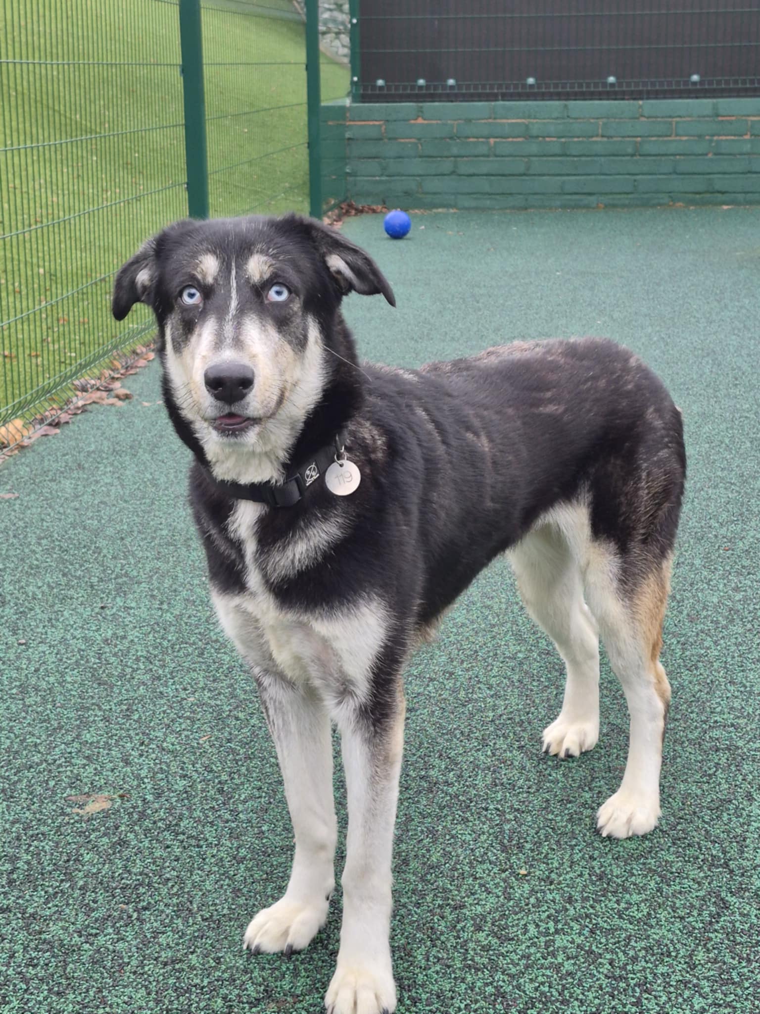 This sweet girl is Alaska. She is very affectionate and loves human attention. She will always come to the front of her kennel for strokes and likes to give kisses. Her favourite part of the day is off lead time in our compound where she can run around chasing her toys. Recently she has been introduced to Chelsea another dog here at the centre and they love bouncing around playing together, Alaska enjoys going for long walks but can be strong on the lead at first but does calm down after a bit. We are looking for an active home for Alaska where she can go on lots of adventures exploring. Alaska would benefit from a private secure garden.