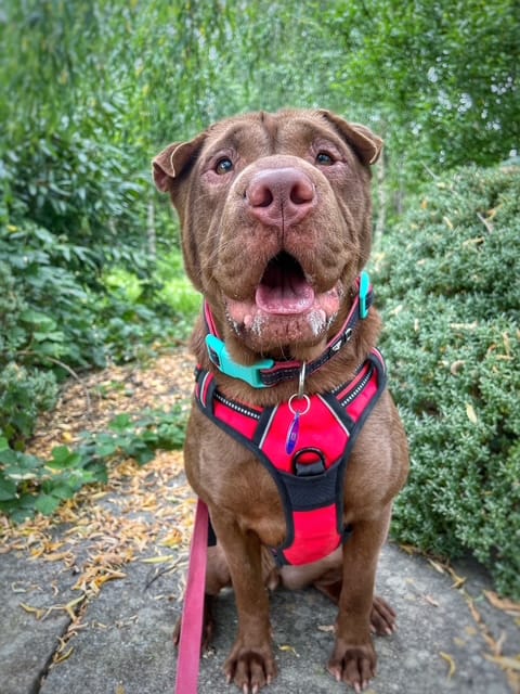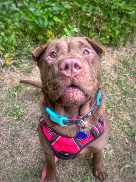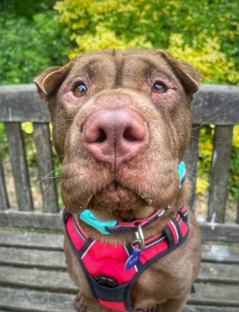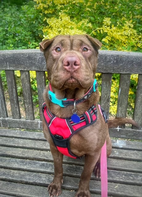 Amber is a sweet, lovely, affectionate girl who adores having lots of cuddles. She enjoys her treats and having peanut butter on licki mats. She also enjoys going on walks and she walks really well on her lead.