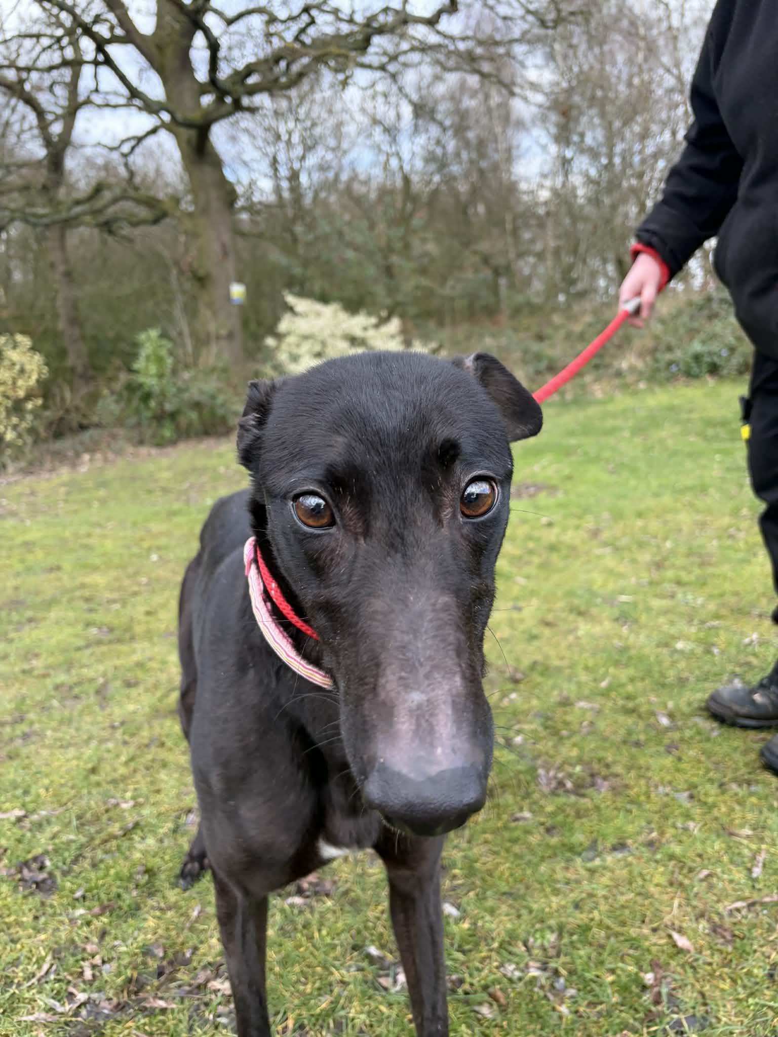 Angel is quite happy to share her kennel space with another greyhound and has interacted well with other dogs whilst being with us. We feel she could potentially live with another dog of a similar size – subject to a successful meet.