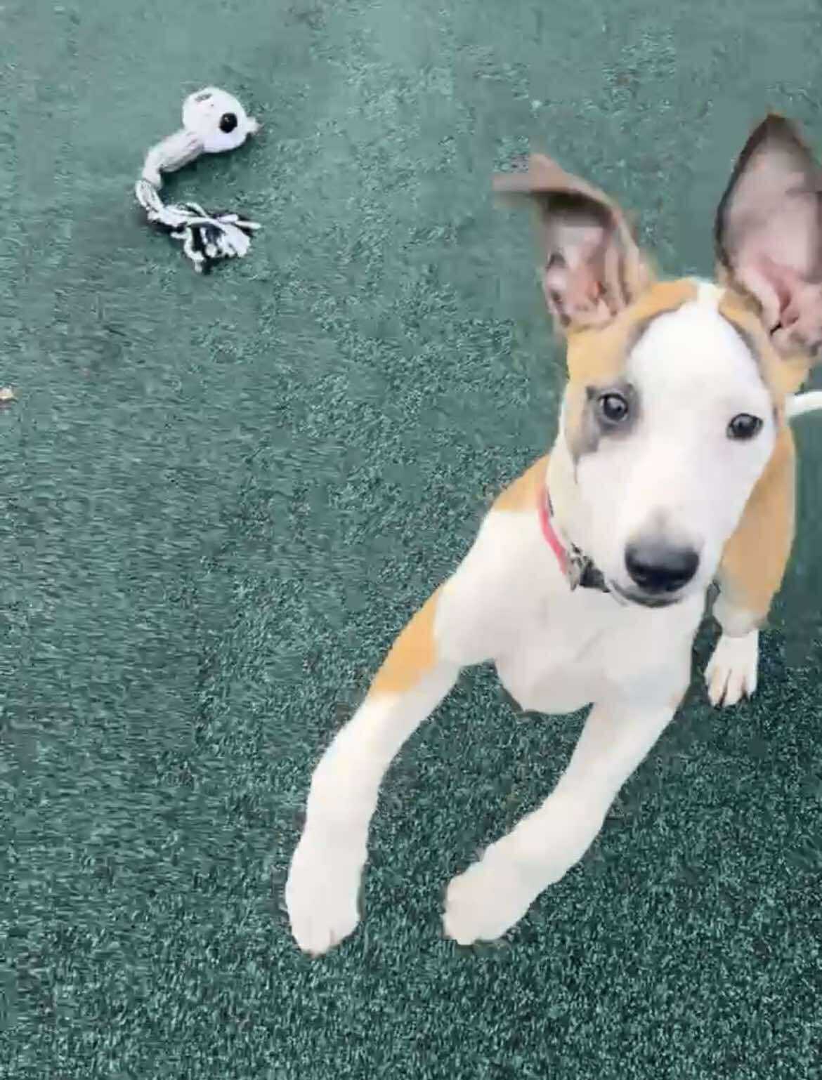 Meet Arlo! Arlo is a typical giddy and lively puppy. He is bursting with energy and loves doing zoomies around our compound and chasing after his toys. Once he has burned off his excess energy he loves lots of cuddles and fuss. He adores people and will always run over to say hello and give you kisses. Arlo will need a home that has an active lifestyle that will be able to give him all the exercise and mental stimulation he will need everyday. He would benefit from puppy classes to continue his training and socialisation. Arlo will need a private secure garden to allow him to have safe off lead time each day.