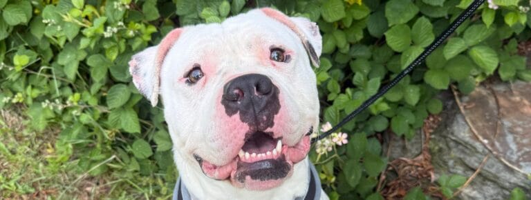 Bam is a lovely, happy chappy, who is very friendly and is great with both people and dogs. He adores a good fuss and cuddle and loves his treats. He enjoys going on his walks and exploring our woodland area. Bam is a clever boy who can follow basic commands such as sit and give paw.
