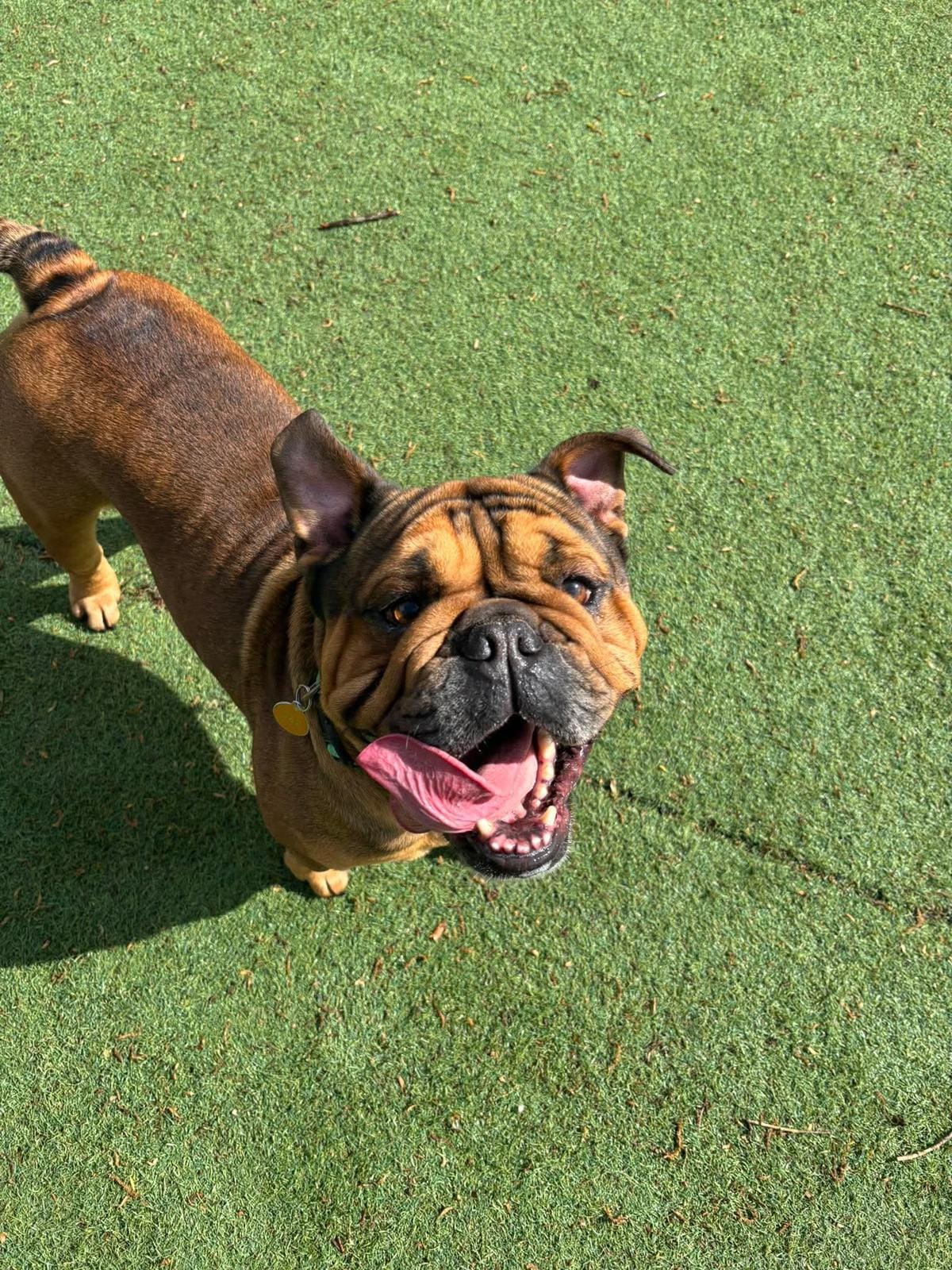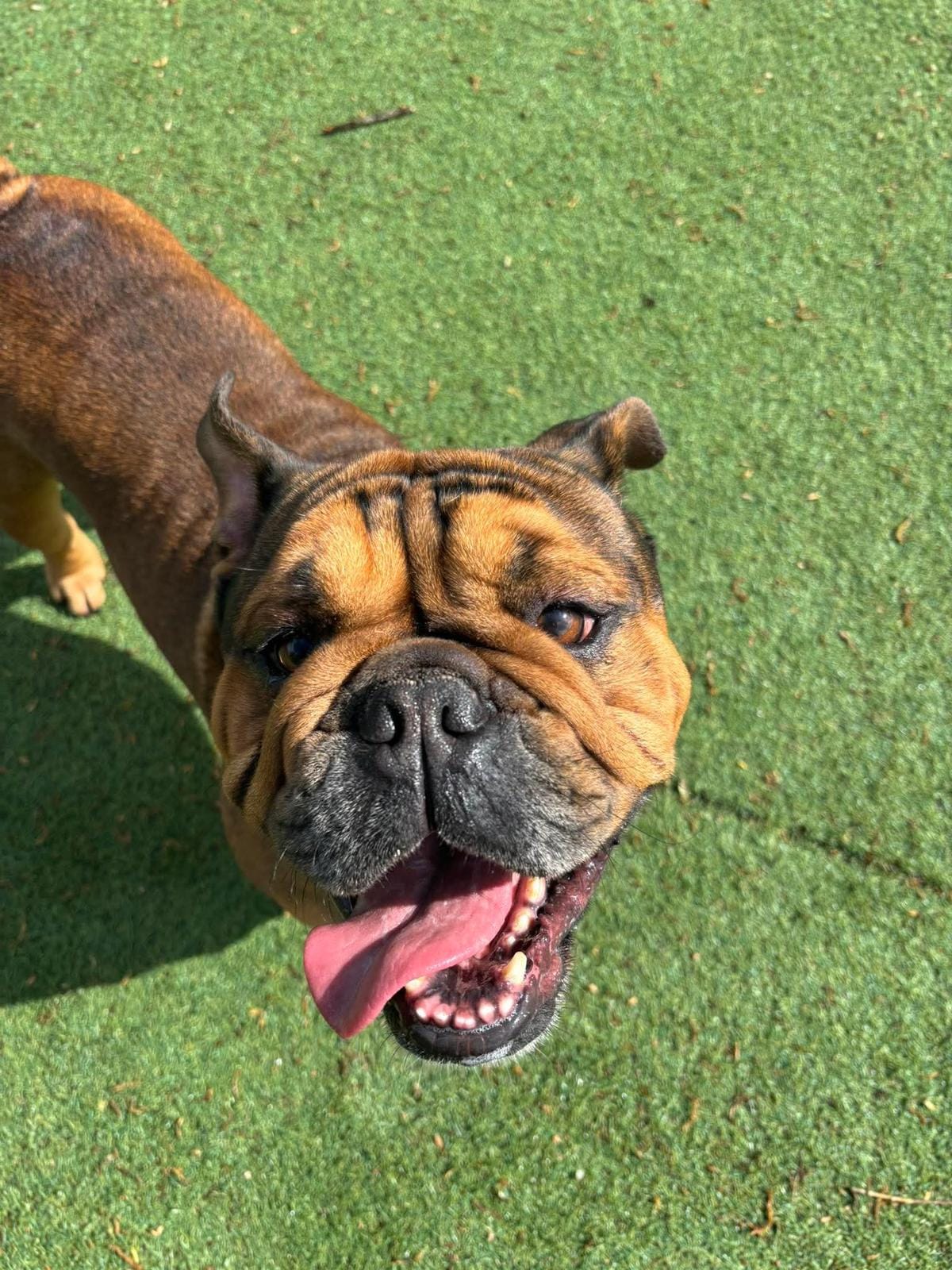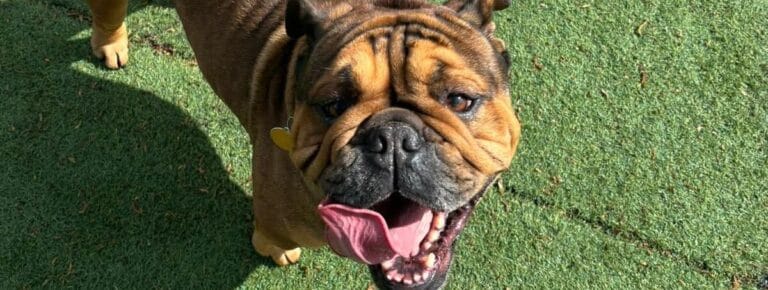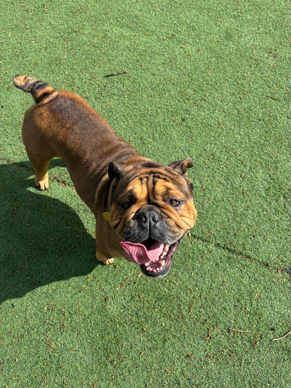 Meet Beautiful Bruce!  He is a typical Bulldog – strong-willed and stubborn with a personality as bold as his build.  He has all the classic bulldog  traits – determined, a little headstrong and full of character.  One he sets his mind on something there’s no changing it.  Despite his stubborn streak he has a playful and affectionate side.  He absolutely loves his toys especially his football and will spend ages entertaining himself, whether its tugging or carrying them around proudly.  Like most Bulldogs he thrives on routine.  We are looking for an experienced adult only home for Bruce that have previous experience with strong-willed Bulldogs. Bruce will need a private secure garden.