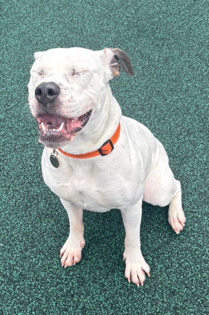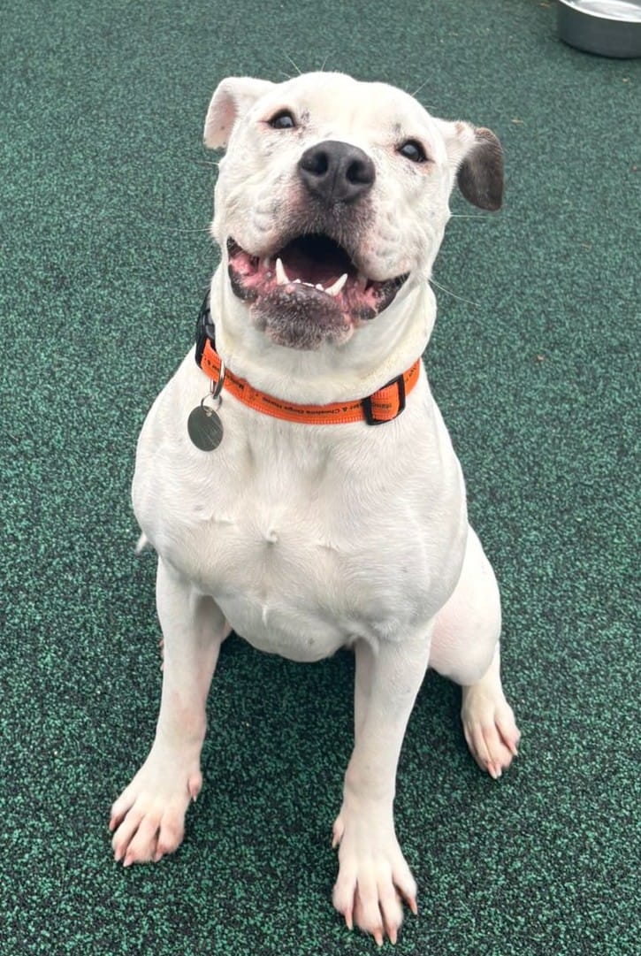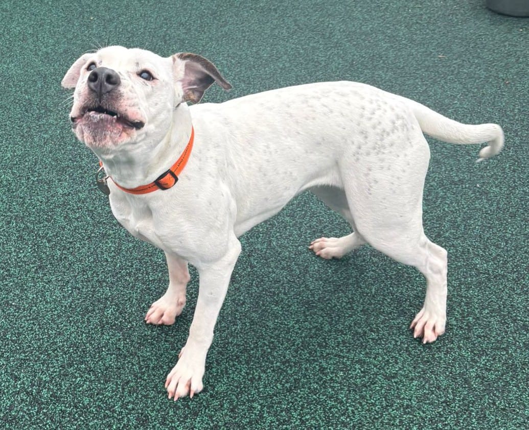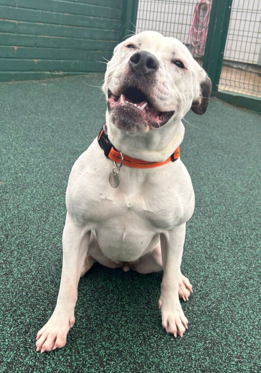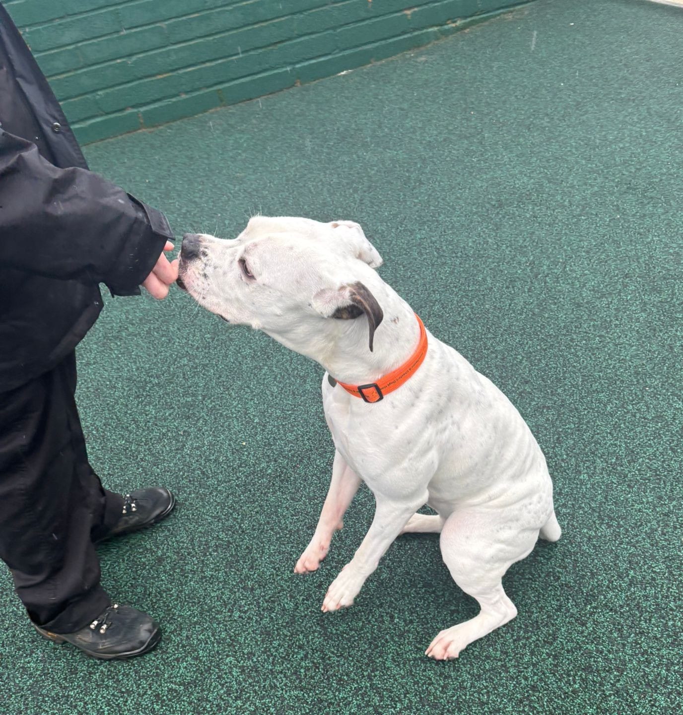 This lovely girl is Calli! She is a very friendly and affectionate girl that absolutely loves belly rubs but she can be very nervous and unsure of new people. As she is still very young Calli can be bouncy and boisterous. Calli has enjoyed going for long walks in the area exploring and walks nicely on her lead. She is very unsure around traffic so the new adopter would need to continue her training around traffic and in busy areas to build up her confidence. We are looking for an experienced owner for Calli that has previous experience of nervous large breed dogs. Calli would benefit from a private secure garden.