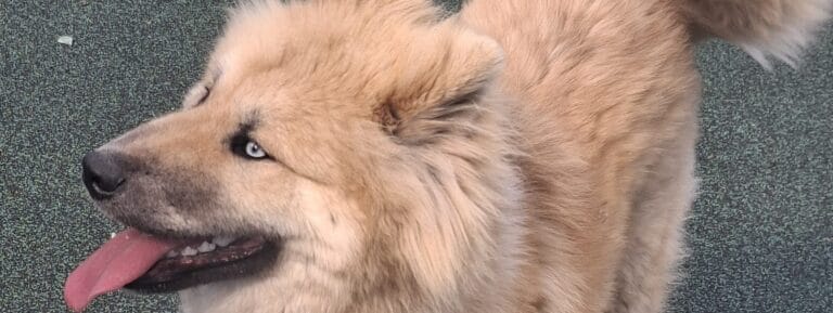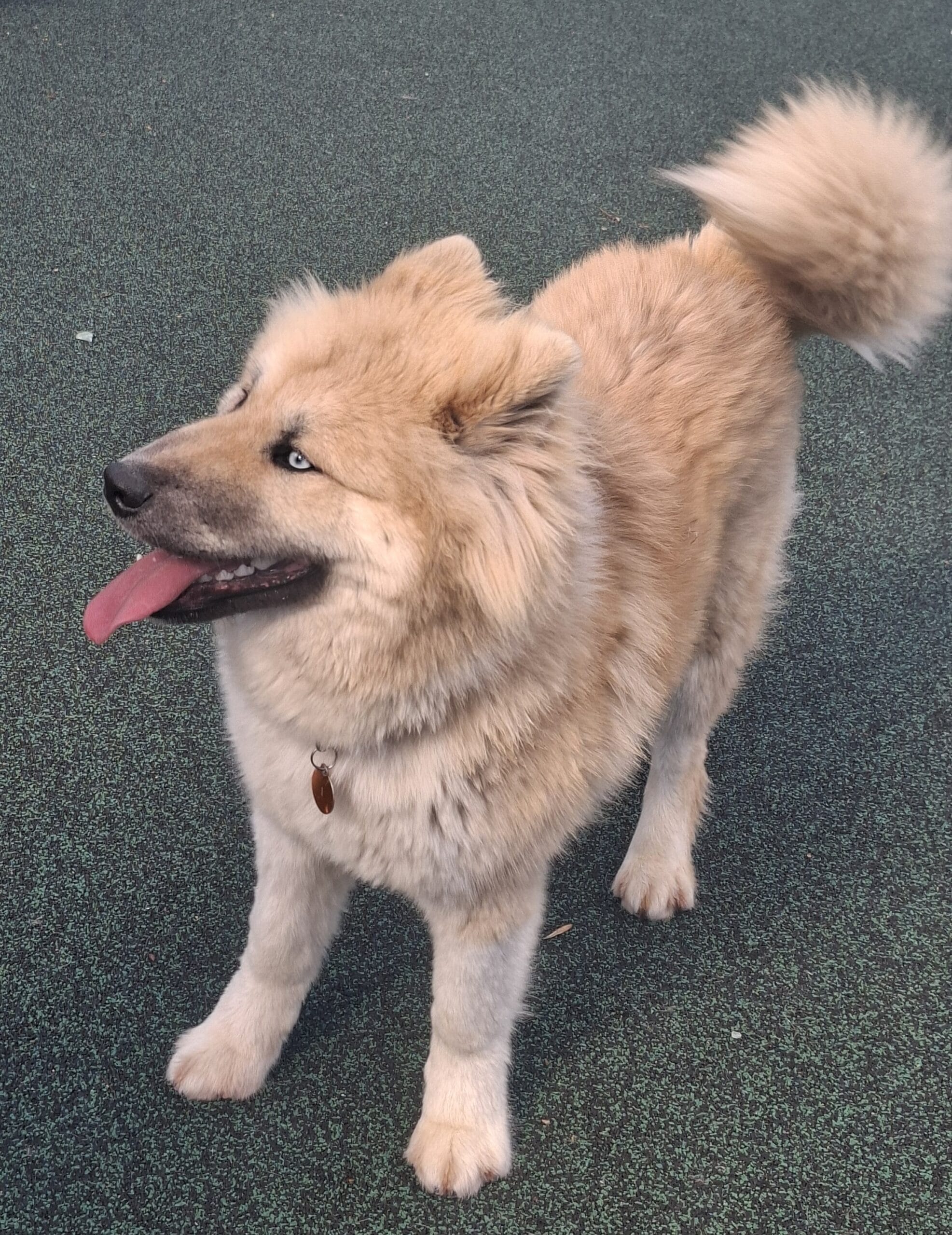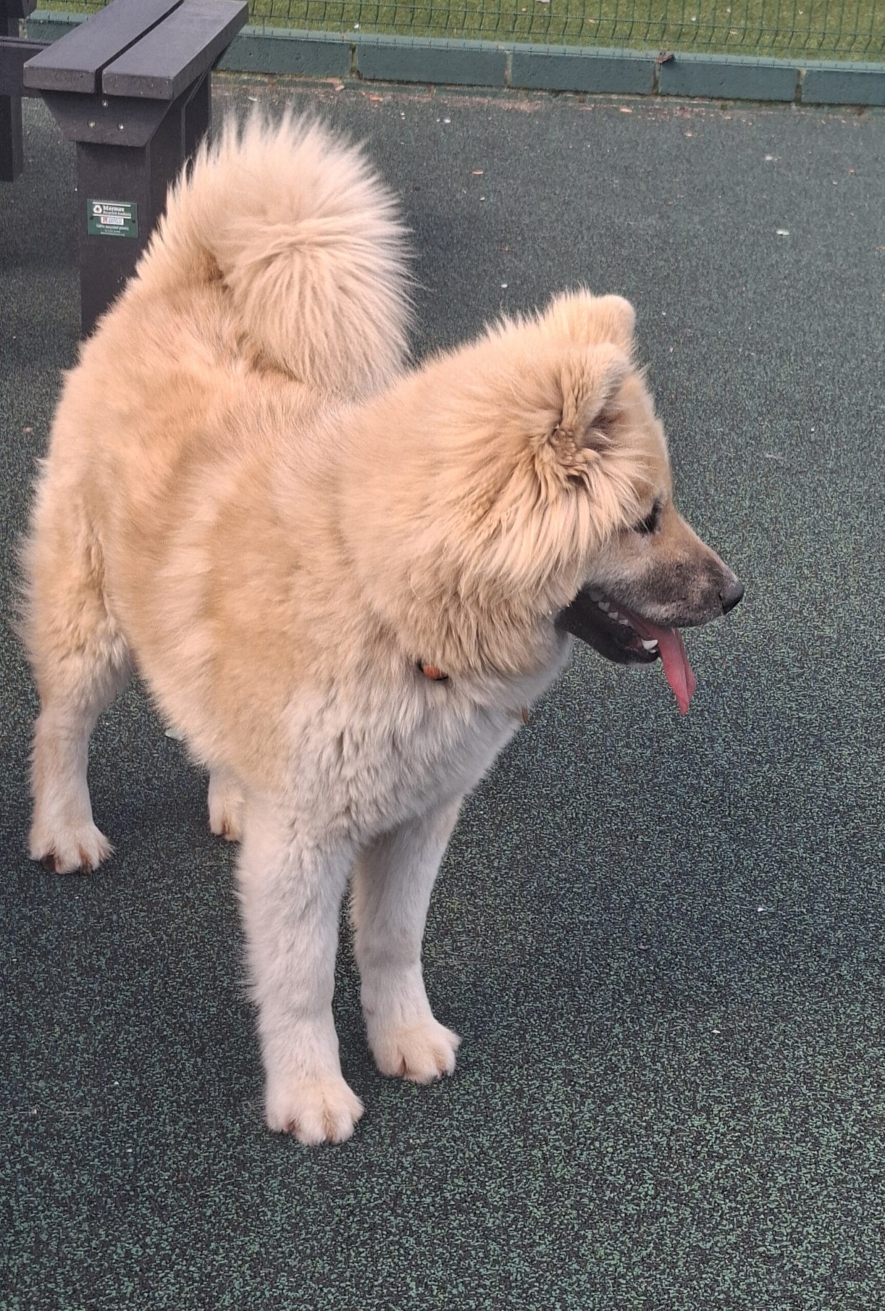 Meet Clarence! He is a young boy with a big personality. He is everything you would expect from a very young dog – bouncy, playful, curious and always ready for his next adventure. Full of energy and enthusiasm, he loves to explore, play and be around people. he is still very much a baby, so will need continued training, guidance and plenty of positive reinforcement as he grows into a well rounded adult dog. As a cross between two intelligent and strong willed breeds, he will thrive in a home that understands the needs of larger, active dogs. Experience with large breeds is strongly preferred, as he will need confident handling, consistent boundaries and ongoing socialisation. His thick fluffy coat is one of his standout features, but it does come with responsibility. Regular grooming will be essential to keep his coat healthy, prevent matting and manage shedding. We are looking for an active home for Clarence that can match his energy levels. He will need a private secure garden.