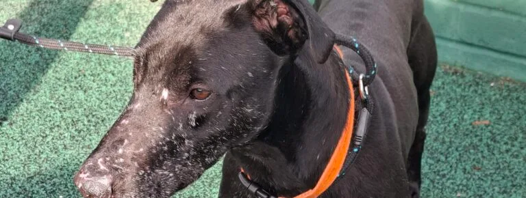 This gentle boy is Dave.  He came into us as a stray with his face covered in old scars and a wound under his chin, as we have no previous history on him we are unsure how he got these.  He is the sweetest boy ever that loves lots of fuss and cuddles.  He enjoys his time off lead in our compound and once he has done a few zoomies he will come over for strokes and a fuss. He loves going for long walks in the area exploring and he walks lovely on his lead. Dave will need a private secure garden.