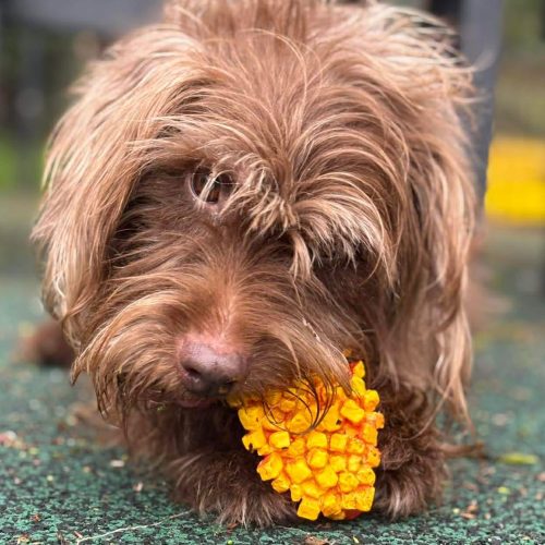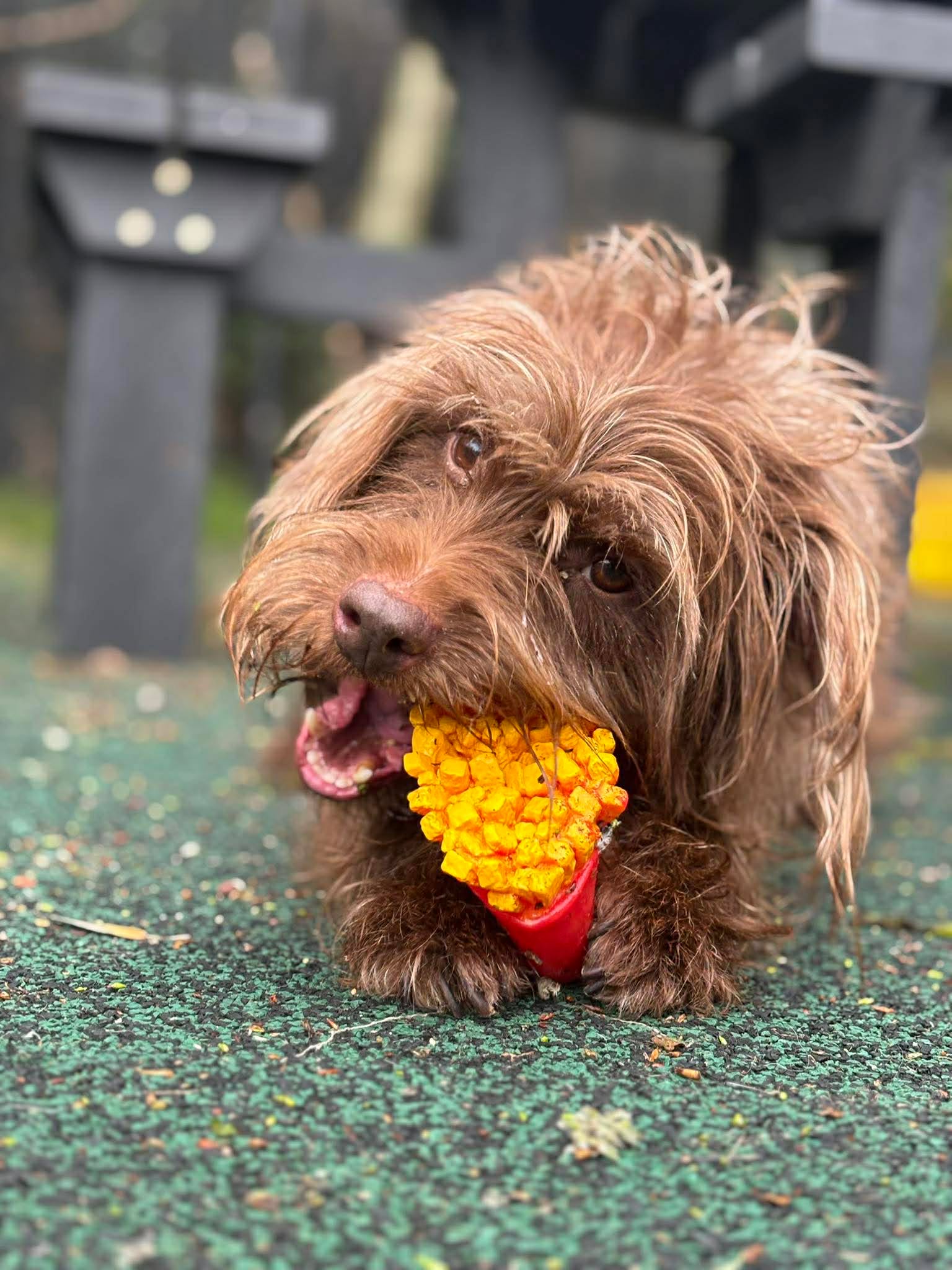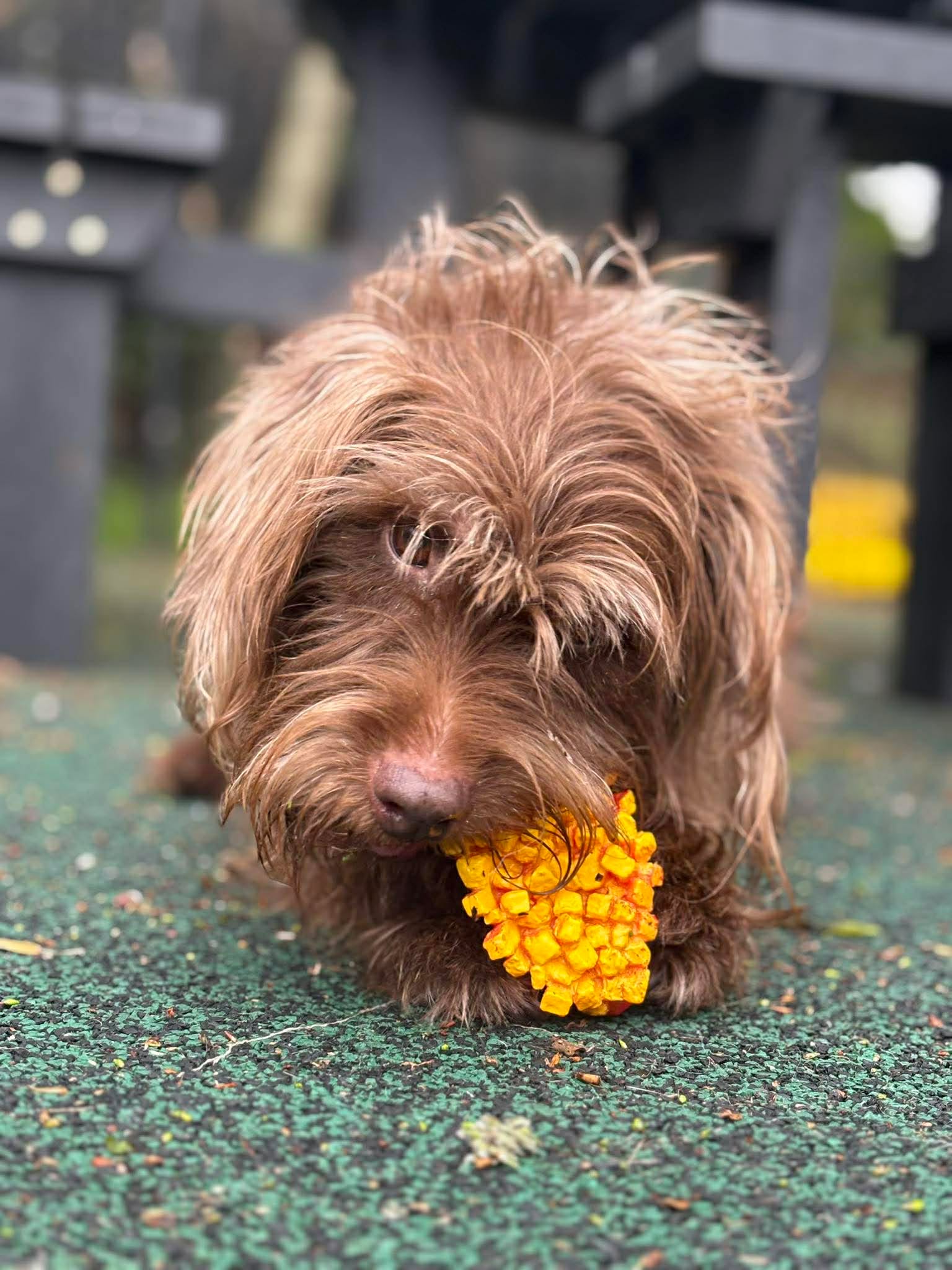 This little character is always on the go – full of life, enthusiasm and mischief. He truly embodies the Terrier personality: Bright, busy and always ready for action. He will need an active home that can provide plenty of exercise, enrichment and outlets for his energy. Dele can be a bit barky at times, which is typical for a Terrier especially when he is excited or looking for attention. Ongoing training and mental stimulation will help channel this in a positive way. One of his favourite things in the world are his toys! He absolutely loves to play and is brilliant at entertaining himself, happily spending time tossing toys around and keeping busy. This makes him a great companion for someone who enjoys interactive play but also appreciates a dog with a bit of independence.