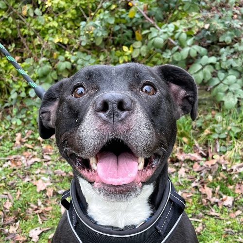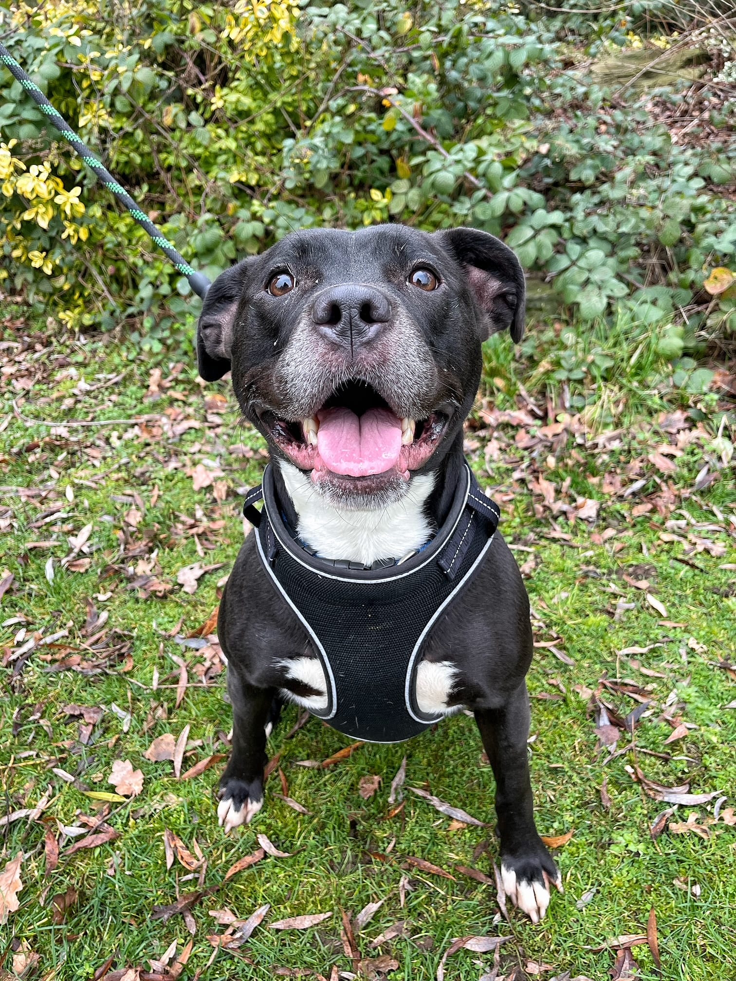 This lively lady is Demi. She is very very bouncy and boisterous and will literally throw herself at you to say hello and does forget how powerful she is. We are looking for an experienced owner that is willing to put in the work with Demi to enable her to be the well behaved girl we know she could be. She does know her basic commands and sits nicely for a treat but her concentration span isn’t very long. All that said she is a friendly girl who loves a lot of fuss and attention. She loves going for long walks exploring the area she is very strong on the lead but does settle down once she has been out for a bit. She would definitely benefit from dog training classes. Demi will need a private secure garden.