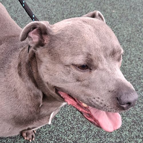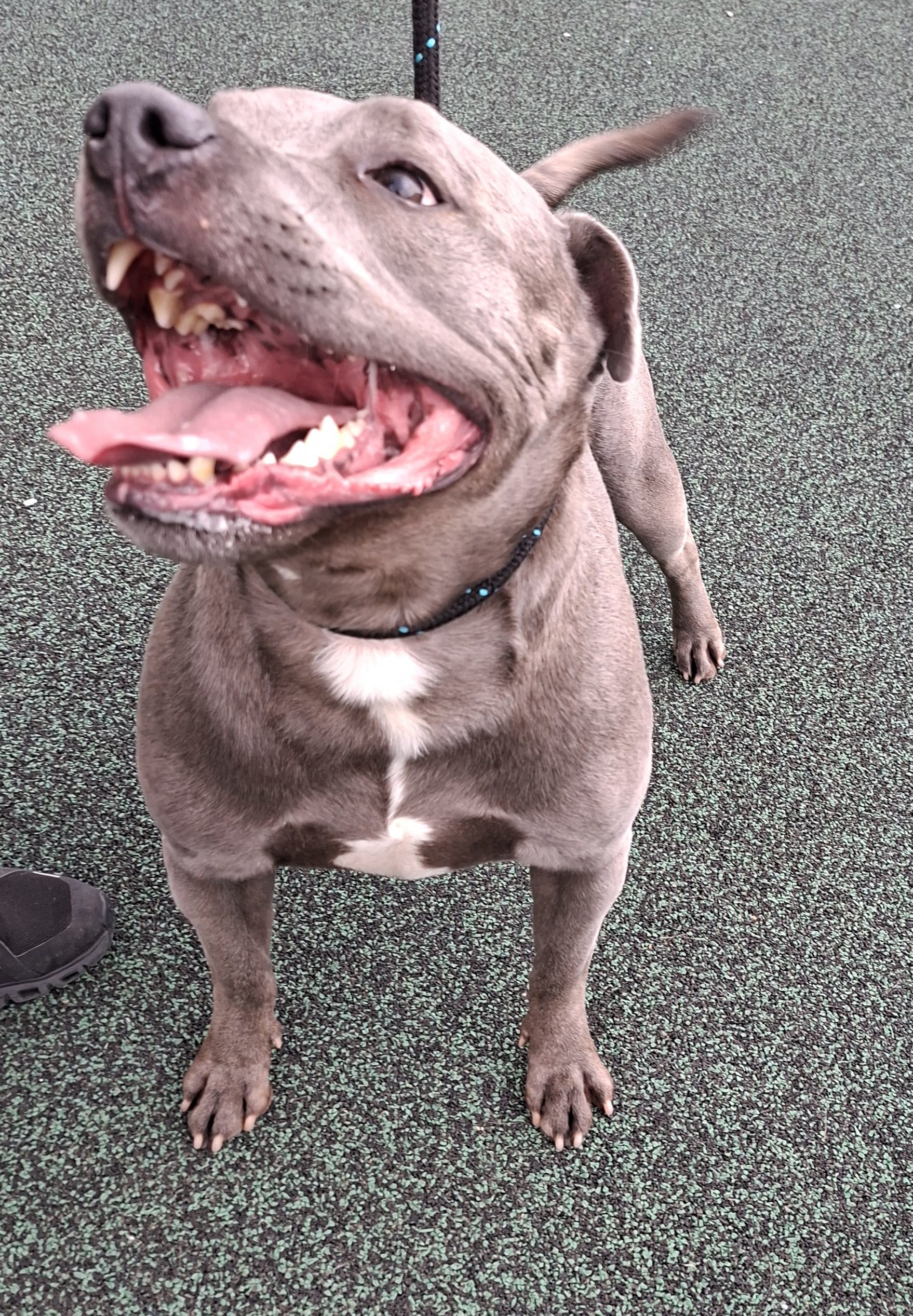 This giddy boy is Fado. He is bursting with energy and always on the go. He enjoys going for long walks and bouncing around our compound. He can get a little boisterous and mouthy when he is excited so would benefit from ongoing training and socialisation. He is everyone’s friend and loves to go and say hello to everyone he sees. He is a little bit chubby so is currently on weight management which the new owner would have to continue.