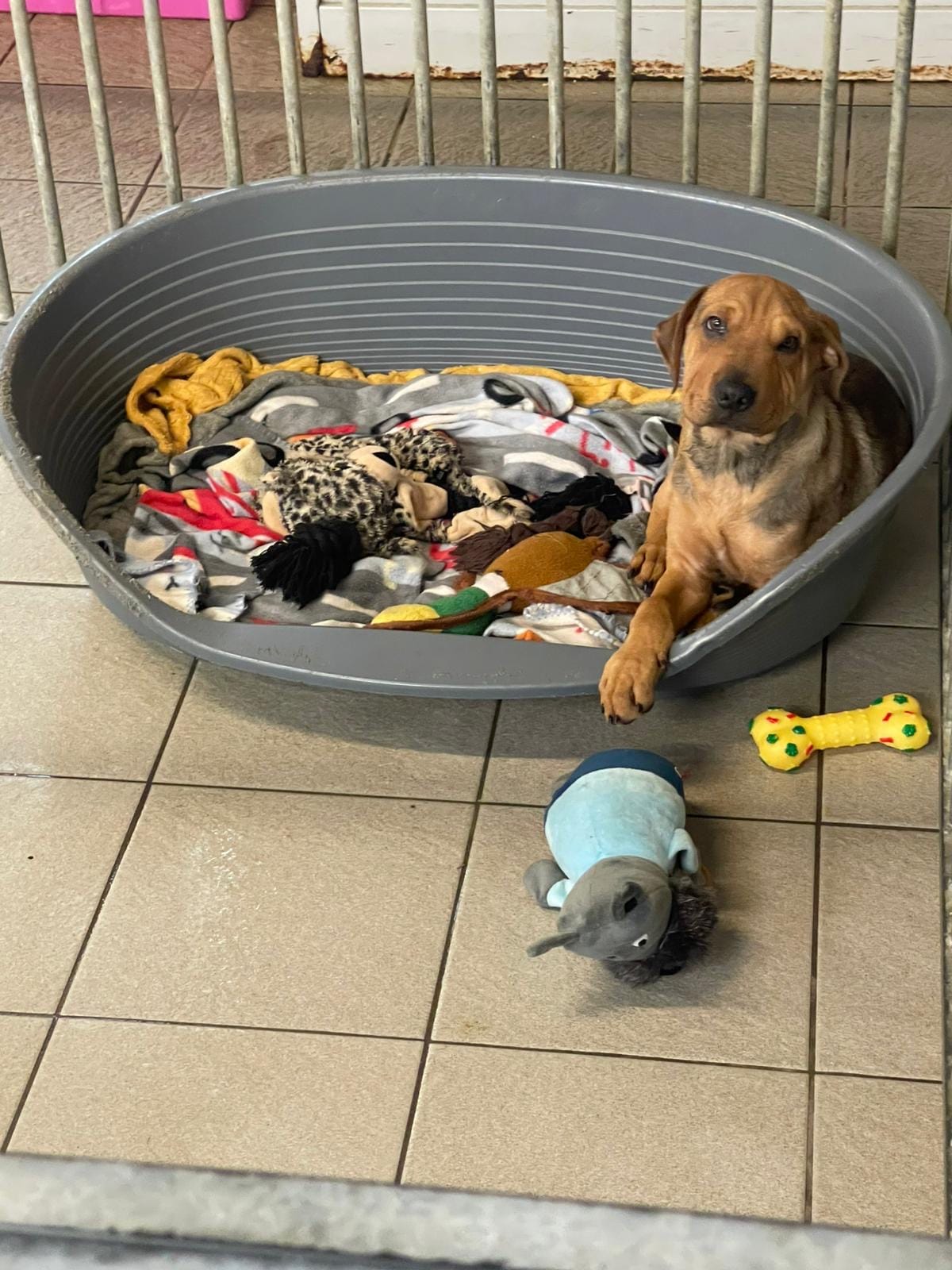 This handsome boy was found as a stray, so we don’t have any history on him, therefore his breed is unknown and we are not sure how big he will grow!