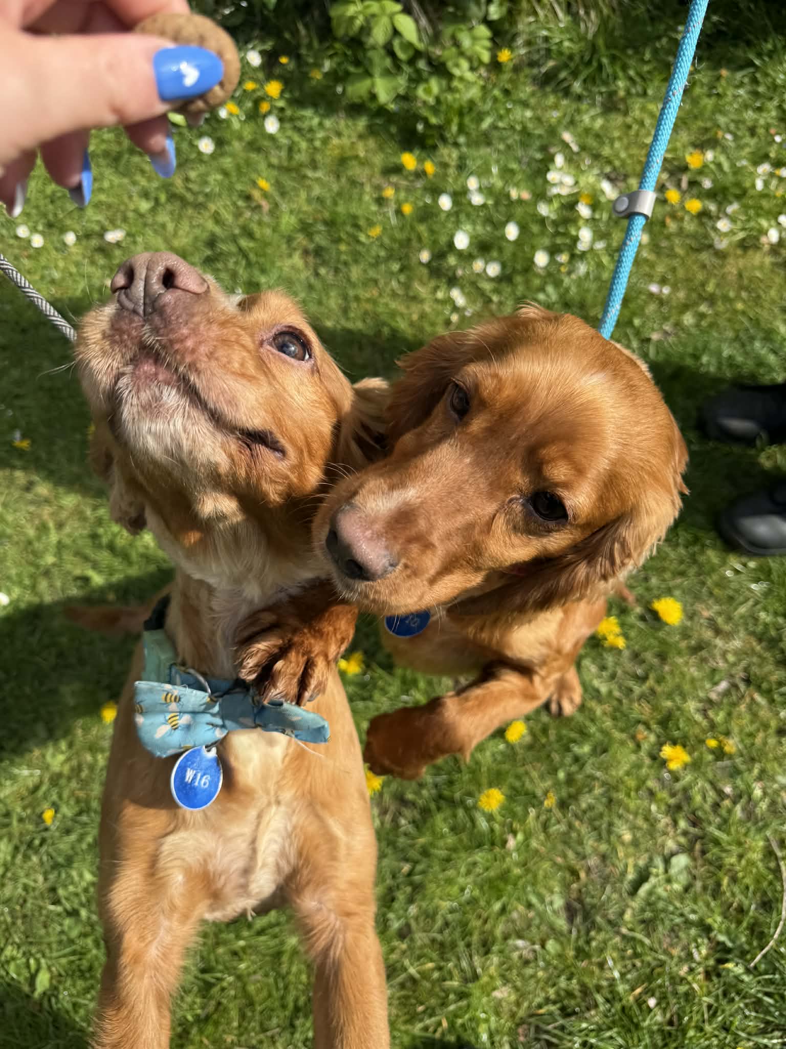 Honey and cinnamon can be a little nervous of new people at first but warm up quickly when they realise they are safe. Due to this we feel that they can be rehomed with children 12 years and older. They may need a few meets to get to know their new family before going home.