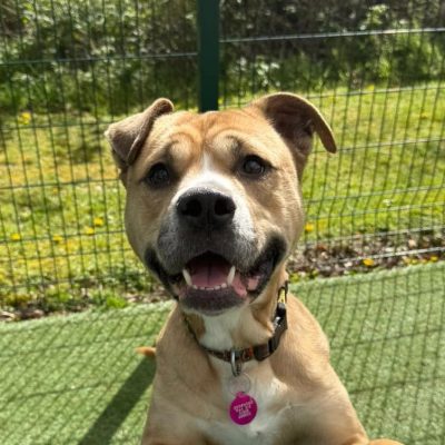 He can potentially live with another dog and live with young children – subject to a successful meet.