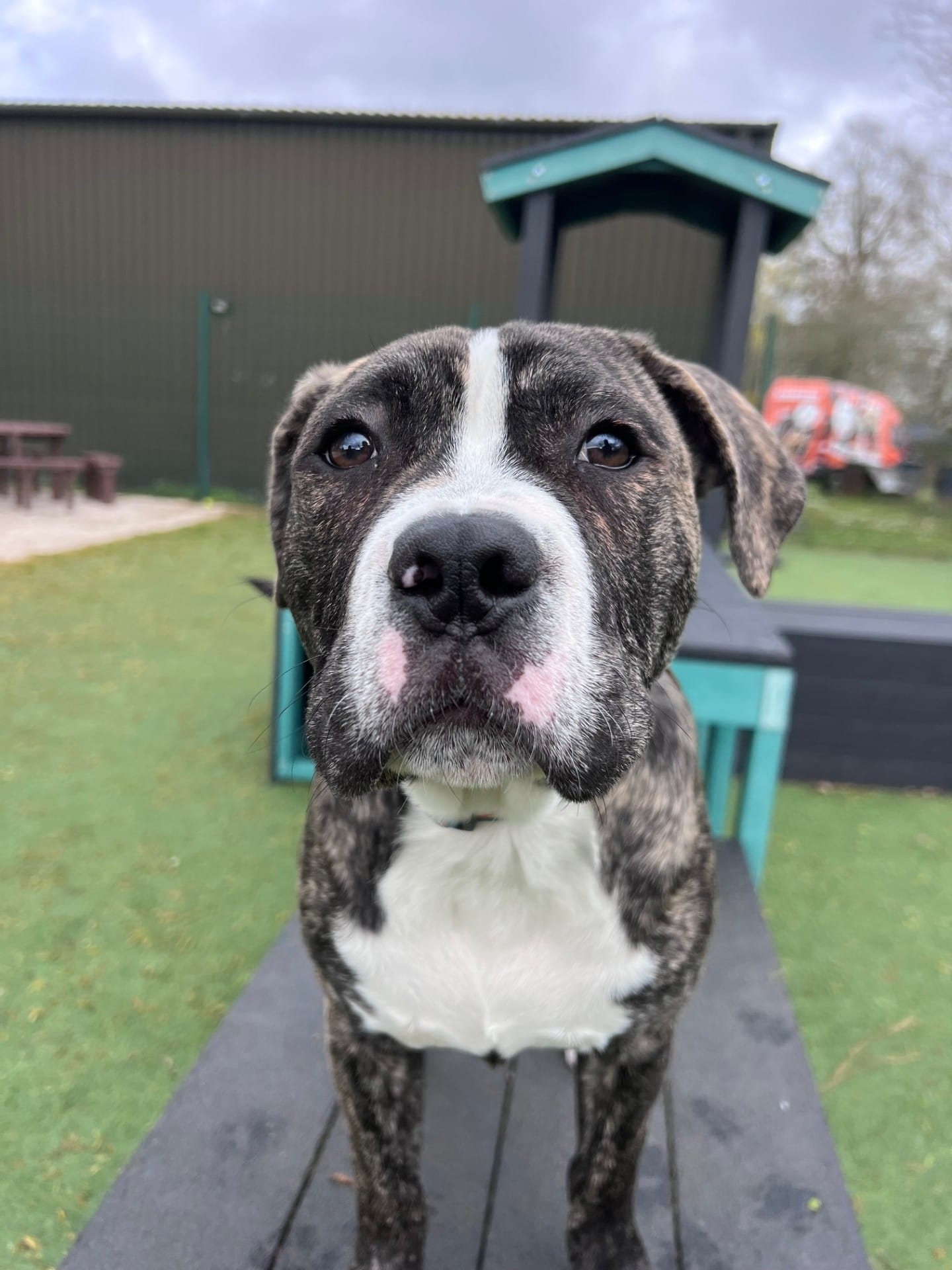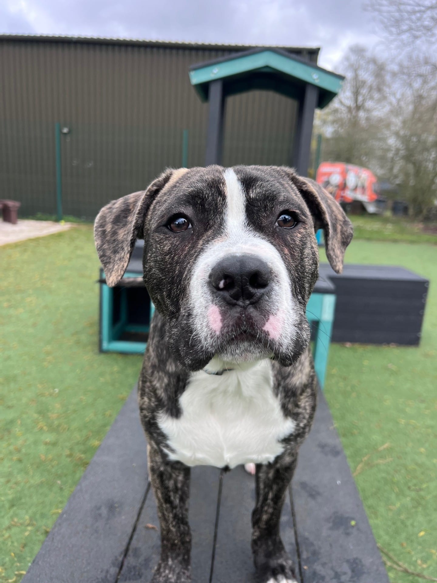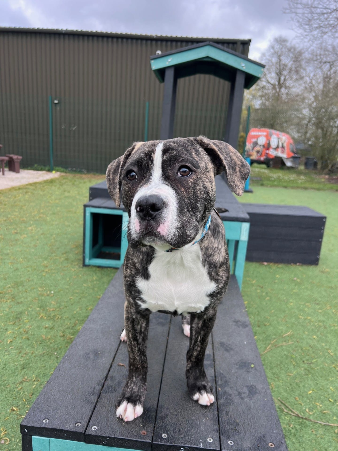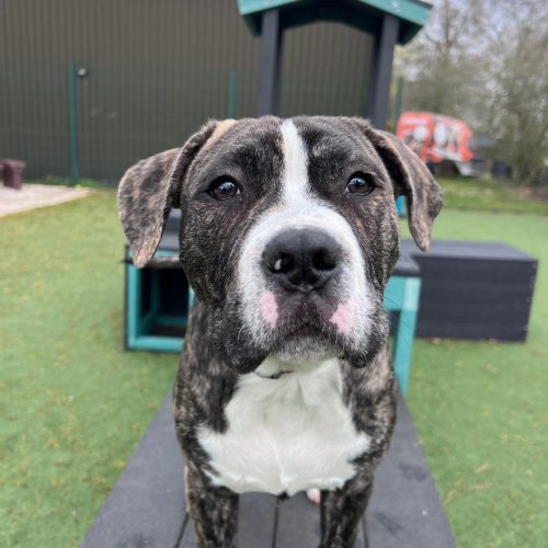 We feel that Marc could potentially live with a younger dog in the home but one that will tolerate his boisterous, puppy behaviour  – subject to a successful meet.