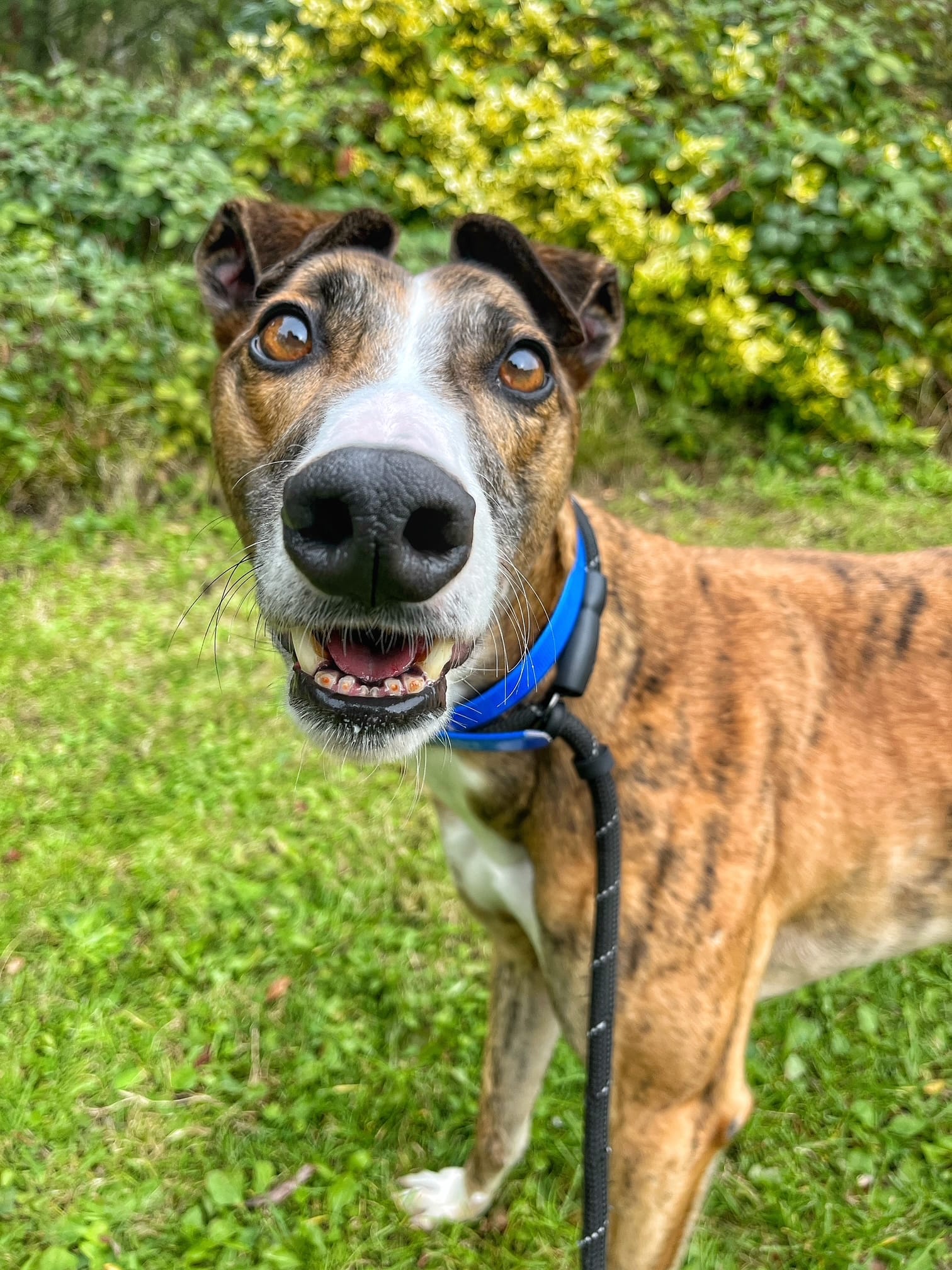 Due to Ned coming to us as an ex-racing Greyhound we have some history on him and therefore suggest a home with children no younger than 12 years old – subject to a successful meet.