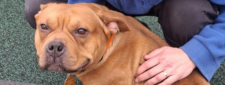 Meet Nutty! She definitely doesn’t live up to her name! She is a very sweet and loving girl who craves lots of cuddles. She will give you her paw to hold whilst she get strokes and bum scratches. She enjoys her off lead time in our compound with her toys but much prefers human attention. The staff say she has been an absolute please to look after. Nutty does enjoy going for a walk and having a sniff about but she can be strong on the lead so would need continued lead training. She would benefit from a private secure garden. If you want a very loving and loyal dog that will always be up for cuddles on the sofa then Nutty could be the dog for you.