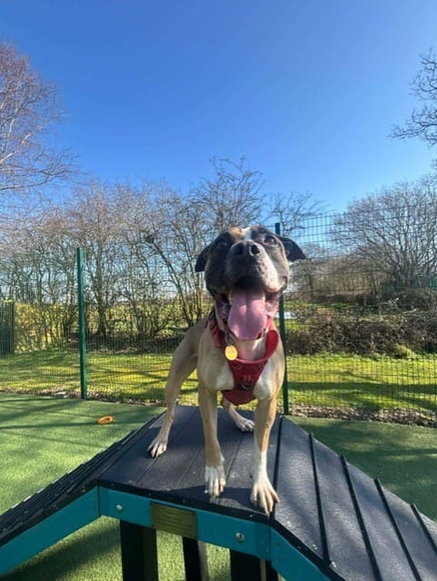 During his time here, Perkins has interacted really well and been really friendly with the other dogs, therefore he could live with another dog of a similar size and temperament and one that wouldn’t mind being his play buddy – subject to a successful meet.