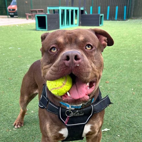 Rocky is a young boisterous but friendly boy, typical of his age and size. He enjoys a fuss and a cuddle. He loves running around and playing, especially with his toys. He doesn’t know his own size so for this reason we feel he would be best suited to a home where children are over the age of 16 years of age.