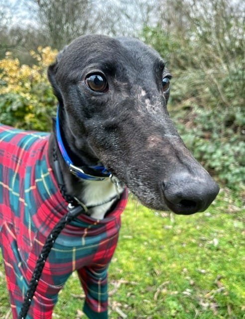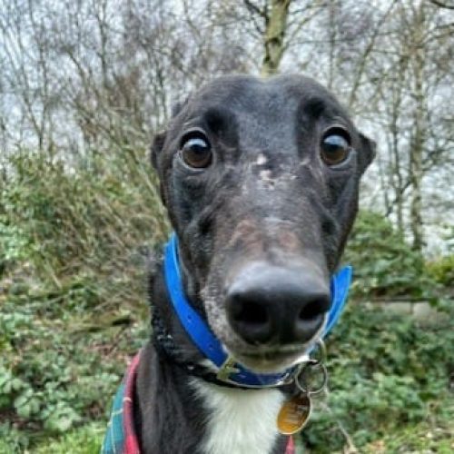 Swifty came in to our care from an ex racing background so most certainly has a high prey drive whilst out on his walks! He loves a walk round the woods but will also get zoomies in our secure compound area when let off his lead! He loves a good fuss and comes to you with such a happy face and is so friendly!