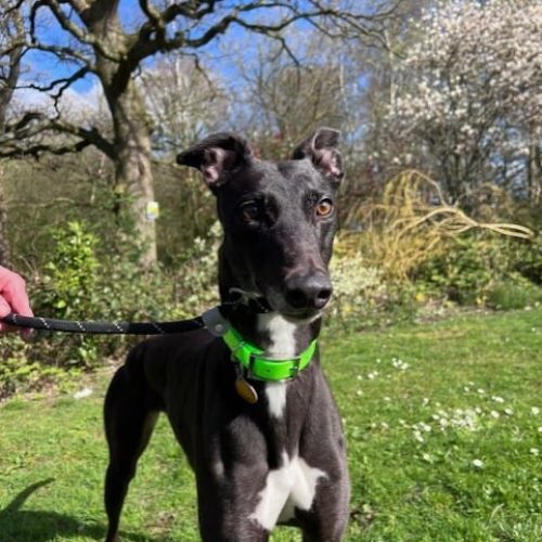 Una is a friendly energetic girl who gets excited when you go into the kennel and loves a fuss. She hasn’t been at the home for long and has come from racing kennels- she is looking for a comfortable and loving home to call her own. She would benefit from some socialisation and lead training as she can be a little unsure at first. She would enjoy a fully enclosed garden where she can relax and have freedom to roam.