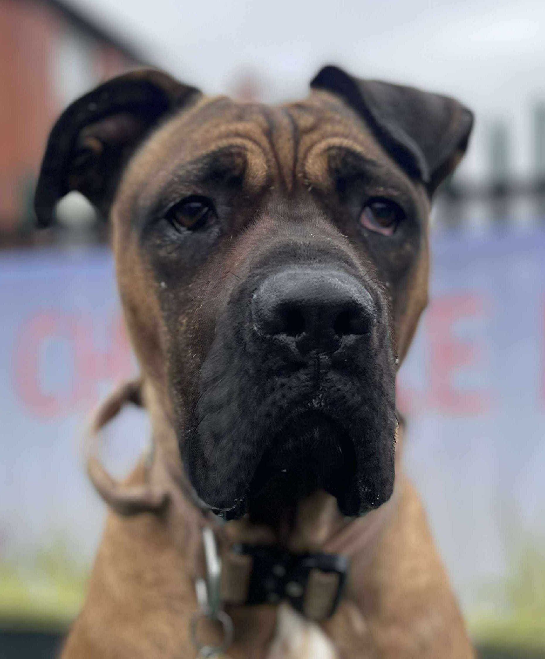 Due to him coming to us as a stray and not having any history on him we feel he would be best suited to a home with an experienced adult only home that is whiling to work with Wellie while he grows out of his big puppy behaviour.
